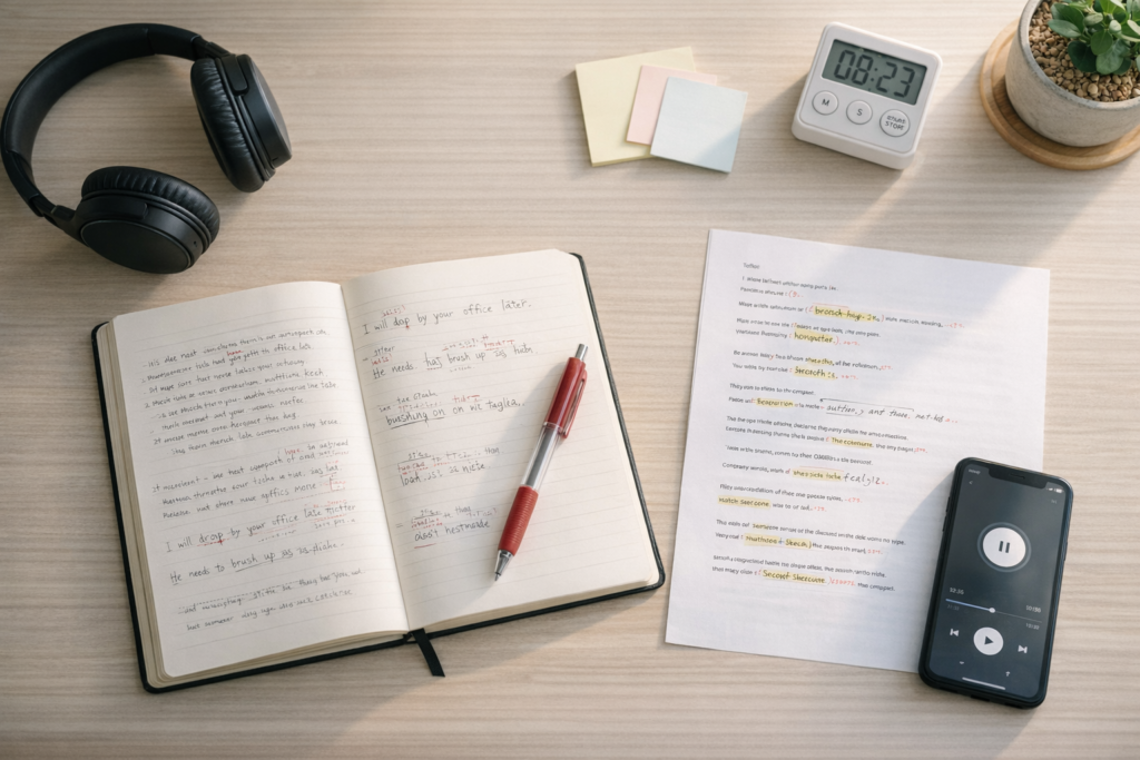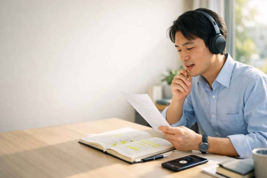 重要なのは、聞き流しを「メインの学習法」ではなく「補助トレーニング」として位置づけることです。聞き流しで耳を慣らしながら、別途シャドーイングやスピーキング練習を行う――これが正しいアプローチです。